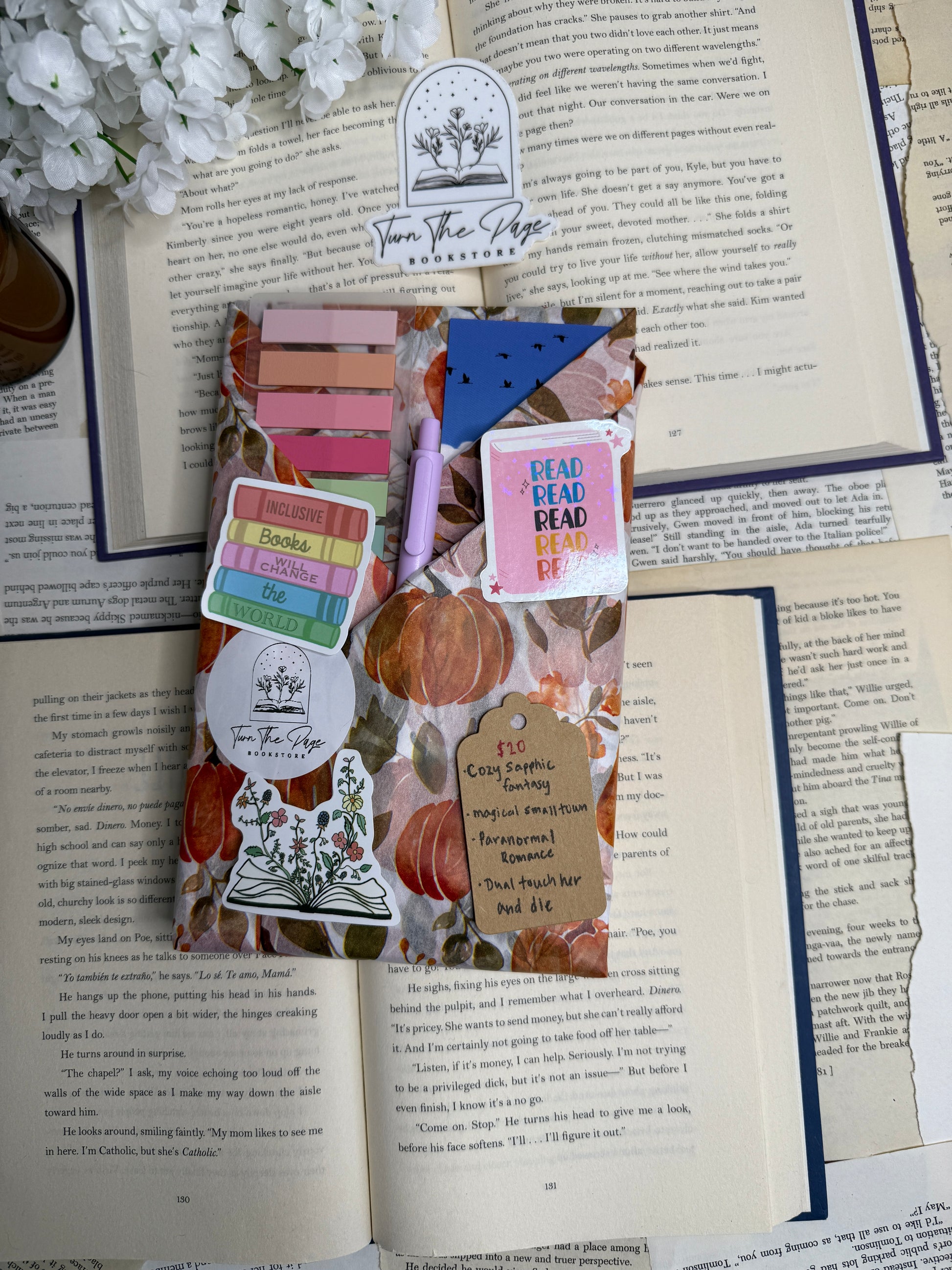 Includes: book, bookmark, annotation tabs, pen or marker, and stickers