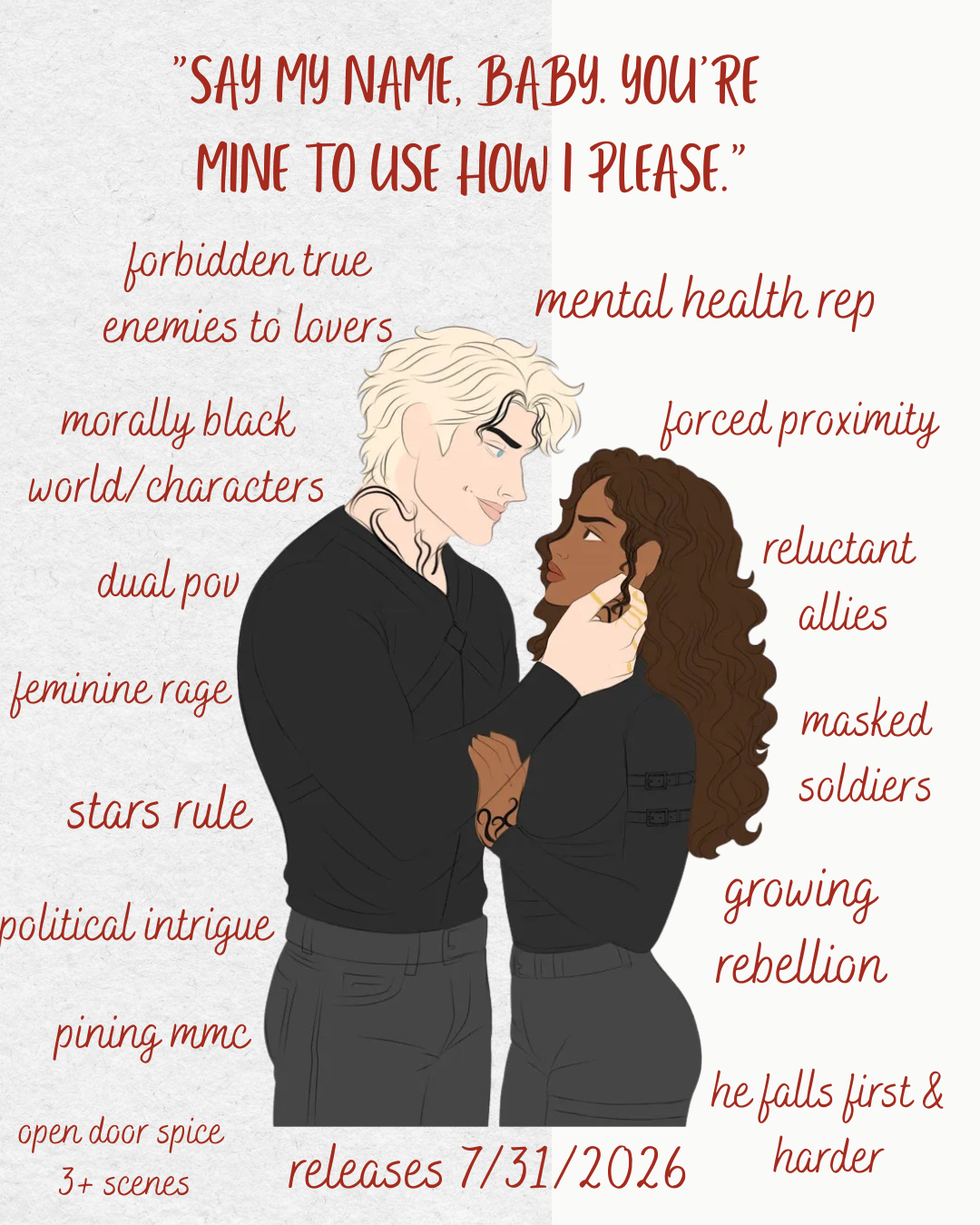 After discovering a life-altering betrayal, Nova Tershetta has found herself with no family and no allies-apart from one. Running was a rash decision, the likes of which she never makes, and now she must face the consequences. As Dajahim teeters on the brink of civil war amidst the building purist agenda and growing rebellion, Nova will be pushed to the edge of her limits and forced to finally choose which side of herself she will fight for, all while Azazel Altair stands at her side. Yet, the enemy she will have to trust harbors secrets of his own, and the rebels have left his hands tied. Even amongst the pain and struggle, the stars eagerly await their promised chaos. If Nova and Azazel don't provide it, then the almighty rulers above will create it themselves.
